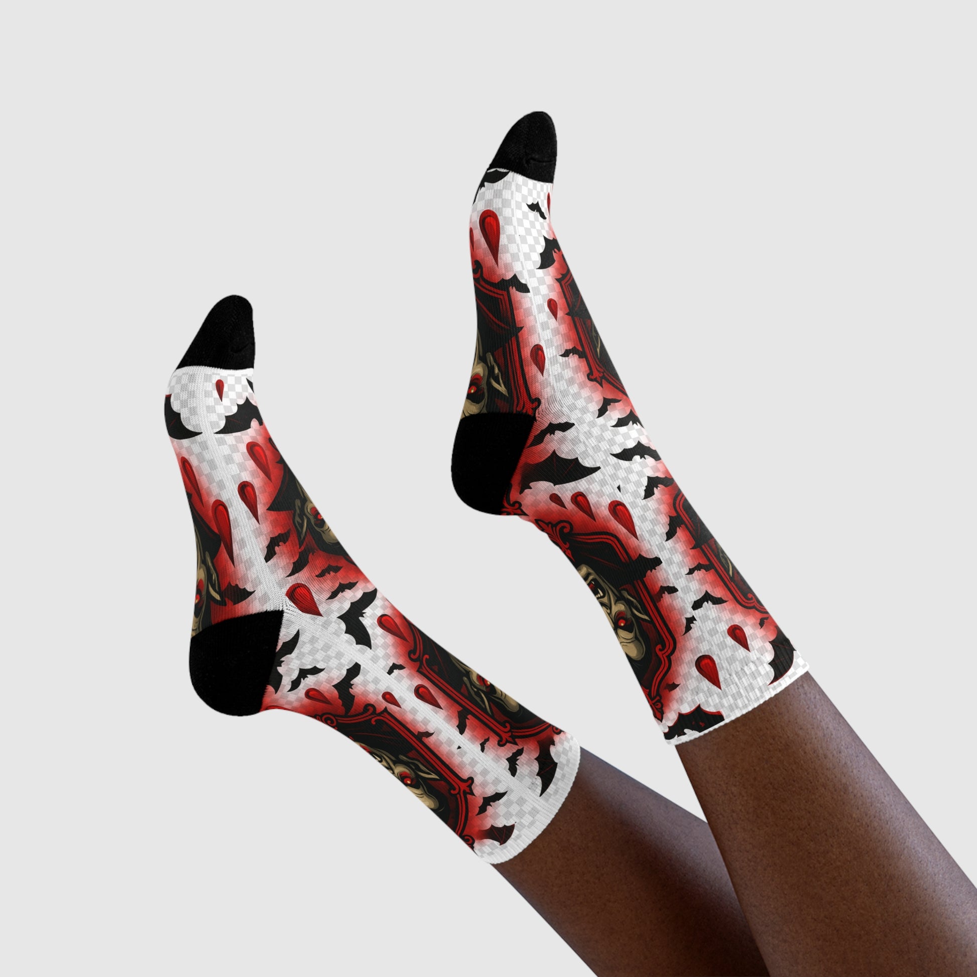 Socks Dracula Blood Bats Halloween Sublimation Crew Socks